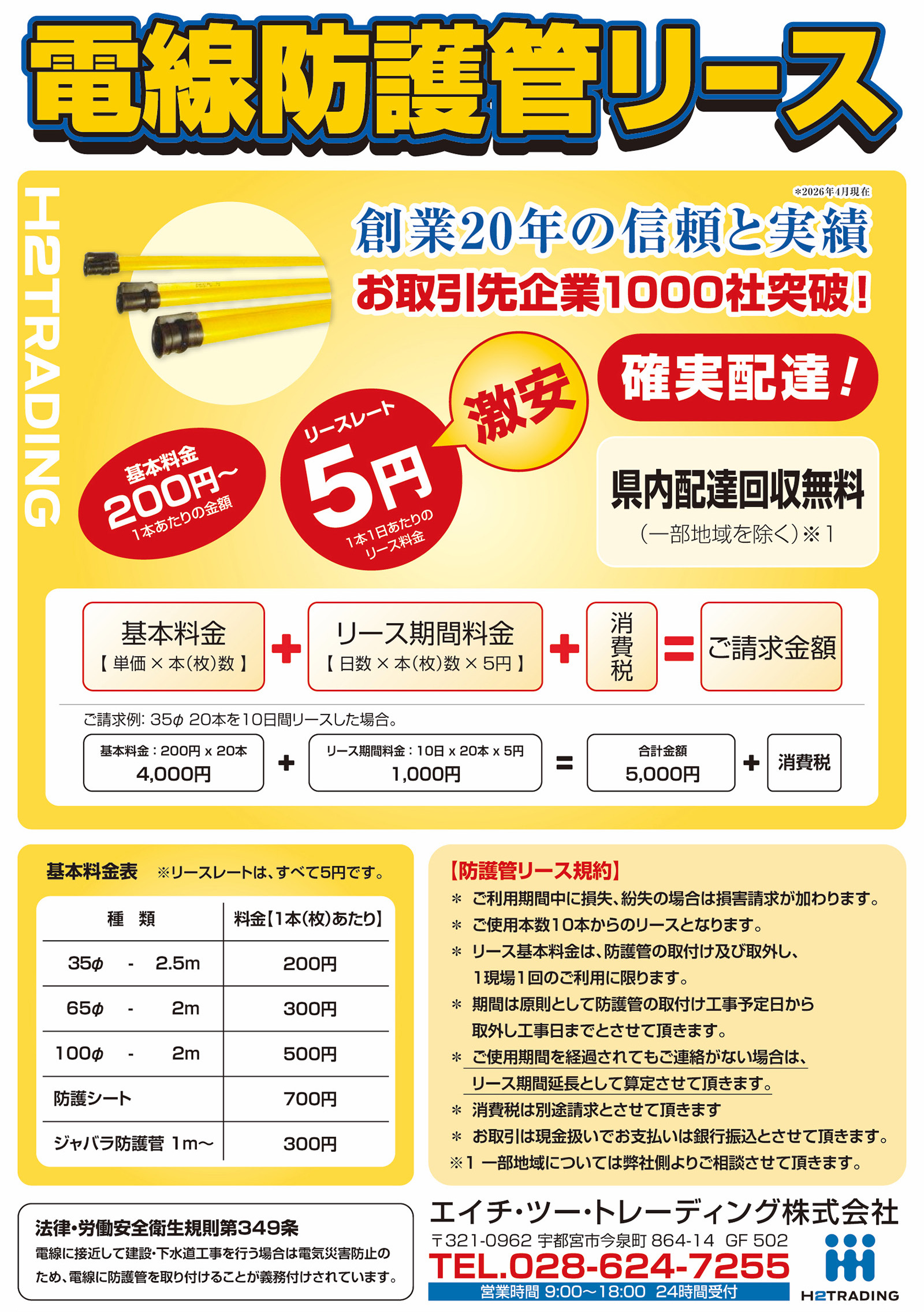 電線防護管リース業務のリース料金およびリース規約等、一切変更しておりません。